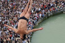 圖:法國"懸崖"跳水賽 選手比技巧拼勇氣