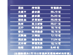 一則李冰冰身家縮水1187萬(wàn)人民幣的報(bào)道,引發(fā)了市場(chǎng)對(duì)創(chuàng)業(yè)板股東身家縮水的關(guān)注。統(tǒng)計(jì)數(shù)據(jù)顯示,截至7月13日,相比最高峰時(shí)的市值,創(chuàng)業(yè)板自然人股東身家共計(jì)縮水逾600億元,其中約80%的自然人股東市值減少,近百自然人股東市值損失過(guò)億。曾經(jīng)的第一高價(jià)股神州泰岳的董事長(zhǎng)王寧,身家縮水至23.74億元,比起最高峰時(shí)縮水了43%。單以幅度而論,王寧身家縮水程度比中小板海普瑞的李鋰、李坦夫婦還要慘。