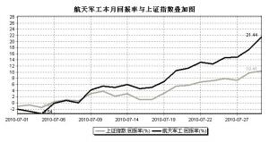 市場表現(xiàn):自7月2日以來,航天軍工行業(yè)漲幅達(dá)21.15%,昨日航天軍工股表現(xiàn)可圈可點,漲幅位居第一位。據(jù)《證券日報》與WIND數(shù)據(jù)統(tǒng)計顯示,航天軍工類股有79只,其中,3只停牌的股票。7月2日以來個股表現(xiàn)良好,漲幅超過20%的股票就有33只,占總數(shù)的43%,超過10%的股票有65只,占總數(shù)的86%,在這期間,沒有下跌的股票,漲幅超過30%的股票有10只,包括成飛集成、博云新材、航天機(jī)電、航天長峰、中航重機(jī)、中國嘉陵、成發(fā)科技、晉西車軸、洪都航空、天興儀表等個股。