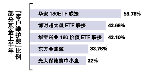 具體來看,18家已公布半年報的基金管理公司,上半年平均向渠道支出了13.76%的管理費用于“客戶維護”。其中,支出“客戶維護費”占其管理費收入最高的三家公司,分別為長信基金、東方基金、光大保德信基金,三家公司各自支出了自身管理費的23.61%、22.25%、20.98%用于“客戶維護”。而從單個基金出發(fā),這個數(shù)據(jù)則更為驚人。整體來說,業(yè)內(nèi)最高三至五成的費用支出比例仍然讓人咋舌。