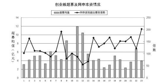 若按創(chuàng)業(yè)板上市公司計劃的募集資金,則板塊的初始規(guī)模也將小得多。統(tǒng)計顯示,前23批創(chuàng)業(yè)板股首發(fā)預(yù)計募資總額為276.82億元,而首發(fā)募資總額卻比其超出577.80億元,超募比例高達(dá)2.09倍,平均每家公司超募4.82億元。事實上,板塊超募比例在1倍以上的個股多達(dá)103只,占總數(shù)的86%,可見對創(chuàng)業(yè)板而言,超募就是一種常態(tài)。