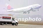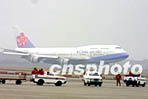 載有春節(jié)返鄉(xiāng)探親臺商及其眷屬"華航"包機(jī)飛離浦東機(jī)場