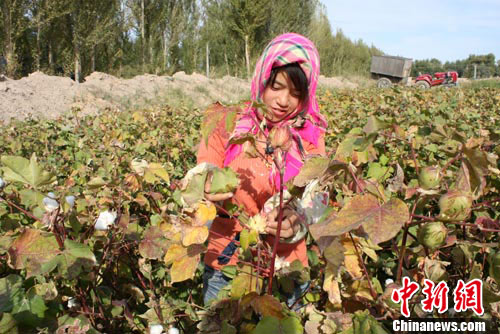 位于甘肅省河西走廊西端的疏勒河流域,是甘肅百萬畝大型自流灌區(qū)之一,時(shí)下,這里種植的棉花喜獲豐收。來自甘肅積石山縣的移民、棉農(nóng)馬化忠今年種了16畝棉花,估計(jì)能產(chǎn)棉花4000公斤。他興奮地說,按當(dāng)?shù)孛藁ㄊ召弮r(jià)格10.3元/公斤計(jì)算,他棉花收入能達(dá)到4萬多元。侯志雄 攝