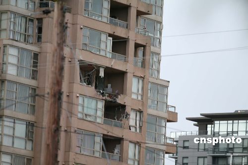 加拿大溫哥華地區(qū)列治文市發(fā)生一起飛機(jī)撞進(jìn)居民樓事故,造成飛行員死亡和兩名住戶受重傷。事故發(fā)生在當(dāng)?shù)貢r(shí)間十月十九日下午四點(diǎn)十分左右,一架雙引擎小型飛機(jī)撞進(jìn)了位于列治文公眾市場附近的玫瑰園二期公寓樓,窗口被撞擊后留下大約五米乘八米的大洞。據(jù)悉,華人占列治文市人口總數(shù)近一半,此樓大部分居民為中國移民。圖為飛機(jī)撞擊公寓樓后的情形。中新社發(fā) 羅琦 攝