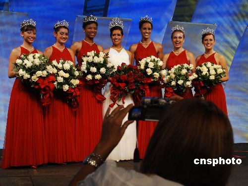美國第九十屆玫瑰皇后和公主的加冕儀式,十月二十五日在巴沙迪那玫瑰宮舉行。高中十七歲少女吉布斯喜戴由鉆石珍珠裝飾的價值十萬美元皇冠,六名少女各頭戴價值四萬五千美元的公主冠。她們將在2008年元旦第一百一十九屆玫瑰花車游行時,喜迎北京奧運花車。美國一百多年來的玫瑰公主選拔超脫于選美活動,在于注重少女的社區(qū)活動和學業(yè)成績以及演講能力,推崇標準的清純“鄰家女孩”。中新社發(fā) 賈國榮 攝