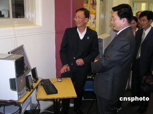 中國國務(wù)院僑務(wù)辦公室副主任馬儒沛(左二)十一月三日在悉尼參觀“雪梨中文學(xué)!薄V行律绨l(fā) 葛明 攝