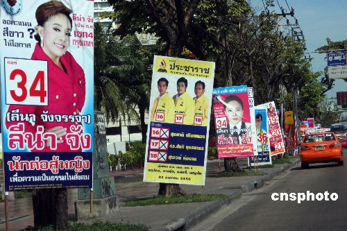 進入十二月的泰國,大選的氣氛和天氣一樣熾熱。大街小巷路邊,琳瑯滿目的候選人的廣告牌,與高音播放著競選者政策的宣傳車,成了泰國十二月街頭一道獨特的風(fēng)景線。將于本月二十三日舉行的泰國新一屆國會下議院選舉引人注目。目前各參選政黨均在做最后的競選沖刺。中新社發(fā) 顧時宏 攝