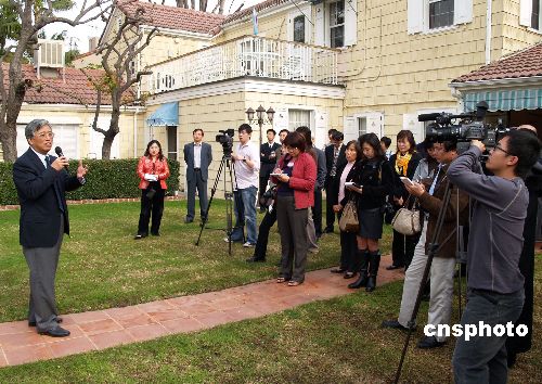 中國駐洛杉磯總領(lǐng)事張?jiān)婆c華文記者新春聯(lián)誼
