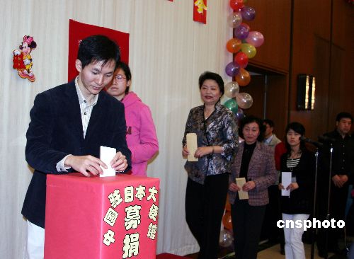 2月4日晚,中國(guó)駐日大使館舉行2008年春節(jié)聯(lián)歡會(huì)前,專門舉行了向國(guó)內(nèi)雨雪災(zāi)區(qū)進(jìn)行捐款的活動(dòng)。中新社發(fā) 滕劍峰 攝