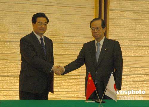 圖:胡錦濤與福田康夫簽訂中日政治文件