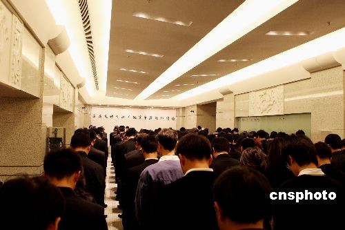 當(dāng)?shù)貢r間5月19日凌晨2時28分,中國駐紐約總領(lǐng)館全體工作人員為在四川地震中遇難的同胞默哀三分鐘,表達沉痛哀悼之情。中新社發(fā) 譚宏偉 攝
