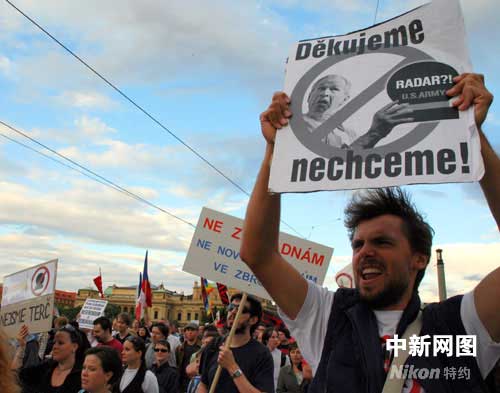 捷克民眾抗議與美國簽署反導(dǎo)雷達基地協(xié)定