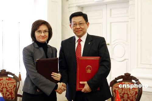 中國(guó)商務(wù)部長(zhǎng)陳德銘與俄羅斯經(jīng)濟(jì)發(fā)展部長(zhǎng)納比烏琳娜共同主持會(huì)議并簽署會(huì)議紀(jì)要。