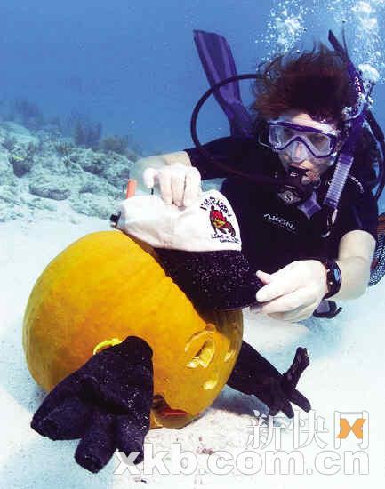 26日,美國佛羅里達(dá)州在海底舉辦了一場別開生面的南瓜雕刻大賽,吸引很多人參加,營造節(jié)日氣氛。