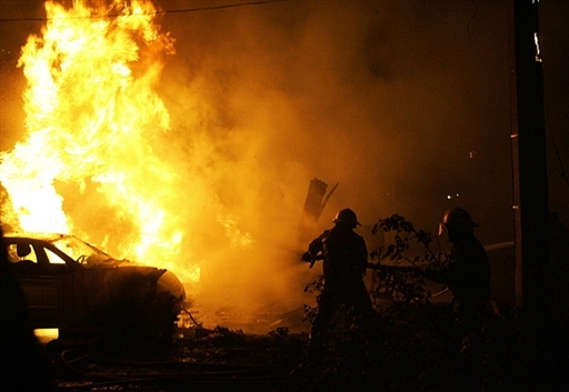 消防人員在飛機(jī)墜毀地點(diǎn)附近進(jìn)行救援。