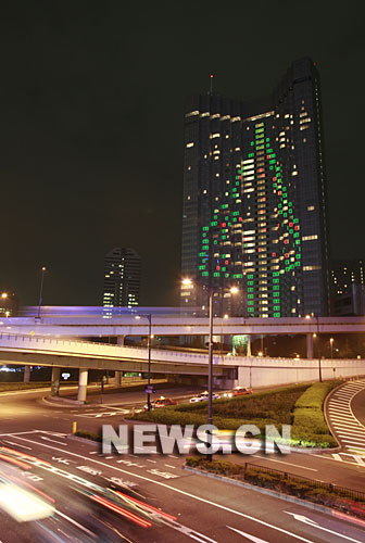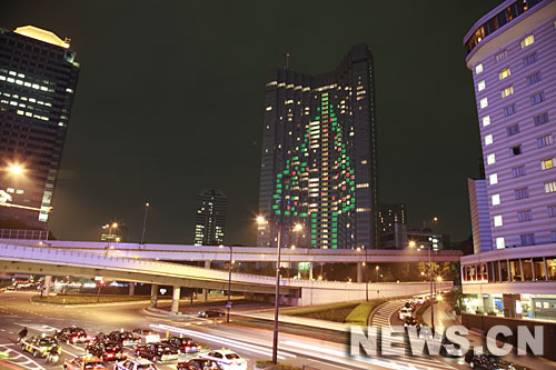 11月6日晚,日本首都東京一家酒店外墻用燈光組成一個(gè)高約100米的大型“圣誕樹”,以迎接即將到來的“圣誕節(jié)”。