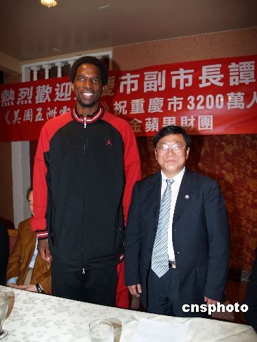 當(dāng)?shù)貢r(shí)間12月6日,重慶市副市長(zhǎng)譚棲偉率重慶市政府代表團(tuán)飛抵美國(guó)洛杉磯,受到洛杉磯僑界的熱烈歡迎,美國(guó)職業(yè)藍(lán)球NBA球星格林也趕來(lái)迎接中國(guó)客人,并與譚棲偉副市長(zhǎng)合影留念。中新社發(fā) 盧威 攝