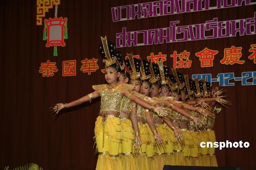 12月20日在曼谷潮州會館舉行的泰國華文民校協會成立二十周年慶祝大會上,來自泰國華文民校的泰國學生表演了精彩的泰式“千手觀音”舞蹈。中新社發(fā) 顧時宏 攝
