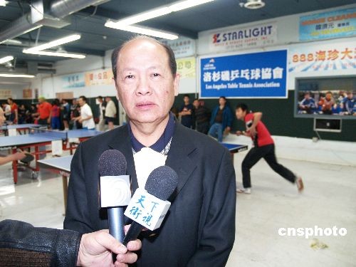 12月28日,美國亞美體育協(xié)會和洛杉磯乒乓球協(xié)會主辦2008年 “團結(jié)杯”乒乓球比賽開賽,共有16支華人乒乓球隊、50余名選手參加逐角。美國亞美體育協(xié)會會長呂詩澄向美國媒體介紹在海外推展乒乓球運動的體驗。中新社發(fā) 盧威 攝
