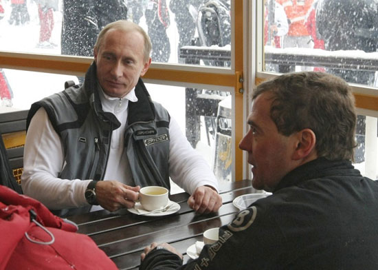 1月3日,在俄羅斯南部度假勝地索契的波利亞納滑雪場(chǎng),俄總統(tǒng)梅德韋杰夫和總理普京一起喝茶。飲茶后,梅德韋杰夫起身結(jié)賬,普京緊跟在后,毫無(wú)掏錢(qián)意向。普京表示:“無(wú)論買(mǎi)什么東西都是總統(tǒng)付錢(qián)。” 梅德韋杰夫則“大方”回應(yīng):“付賬是我的工作。”