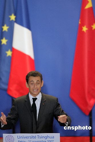 正在中國(guó)訪問(wèn)的法國(guó)總統(tǒng)尼古拉·薩科齊,11月27日上午到中國(guó)著名學(xué)府清華大學(xué)發(fā)表演講,并接受學(xué)生提問(wèn)。中新社發(fā) 任晨鳴 攝