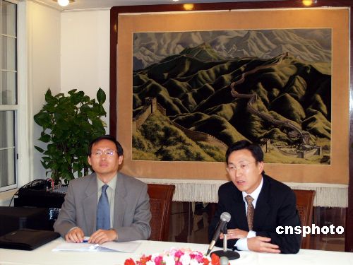 11月28日,中國(guó)駐洛杉磯總事館實(shí)行新聞發(fā)言人制度,將每月舉行一次新聞發(fā)布會(huì),廣邀美國(guó)主流媒體及華文媒體記者參加。在首次新聞發(fā)布會(huì)上,副總領(lǐng)事許朝友和新聞發(fā)言人陳世杰,就保護(hù)中國(guó)公民、北京奧運(yùn)海外志愿者報(bào)名手續(xù)等問(wèn)題回答了記者的提問(wèn)。中新社發(fā) 盧威 攝