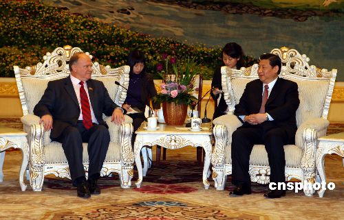 一月二十四日,中共中央政治局常委、書(shū)記處書(shū)記習(xí)近平在北京會(huì)見(jiàn)俄羅斯聯(lián)邦共產(chǎn)黨主席根·安·久加諾夫一行。中新社發(fā) 任海霞 攝