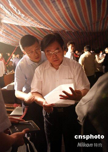 四川省省長蔣巨峰在災區(qū)指揮抗震救災