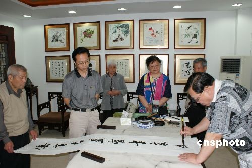 圖:世界華人美術(shù)家協(xié)會(huì)主席楊玉琪為賑災(zāi)揮毫