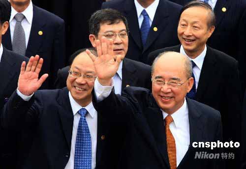 5月27日,中國(guó)國(guó)民黨主席吳伯雄率領(lǐng)的大陸訪問(wèn)團(tuán)拜謁中山陵。應(yīng)中共中央總書(shū)記胡錦濤的邀請(qǐng),吳伯雄率團(tuán)對(duì)大陸進(jìn)行為期6天的訪問(wèn),首站便是南京。他在拜謁儀式后特別強(qiáng)調(diào),兩岸要正視歷史,面對(duì)現(xiàn)實(shí),開(kāi)創(chuàng)未來(lái),明年國(guó)民黨將派團(tuán)參加在南京舉行的孫中山先生奉安中山陵80周年大型紀(jì)念活動(dòng)。圖為吳伯雄(右)向周圍民眾揮手致意。中新社發(fā) 盛佳鵬 攝