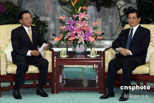 中共中央總書(shū)記胡錦濤,6月13日下午在北京釣魚(yú)臺(tái)國(guó)賓館會(huì)見(jiàn)臺(tái)灣海峽交流基金會(huì)董事長(zhǎng)江丙坤一行。中新社發(fā) 任晨鳴 攝