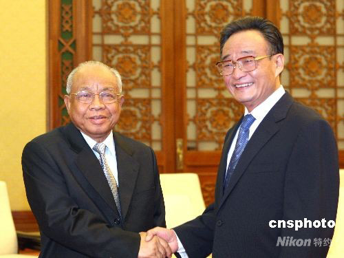 圖:吳邦國(guó)會(huì)見柬埔寨參議院主席謝辛