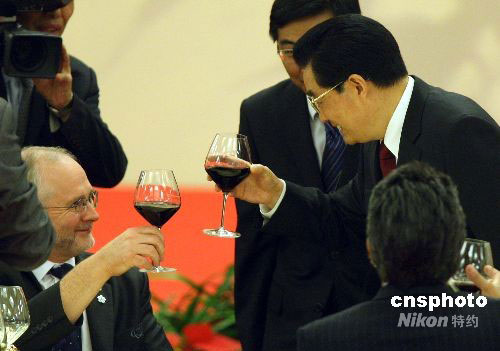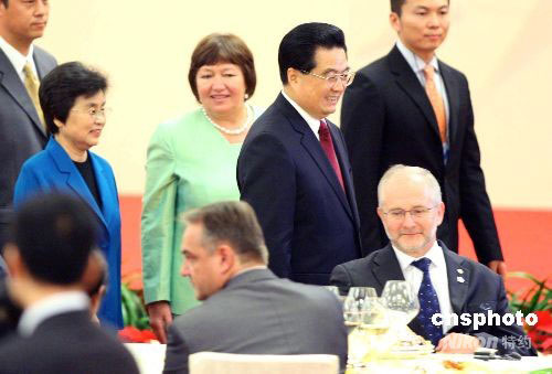 9月6日,中國國家主席胡錦濤和夫人劉永清在北京人民大會堂舉行宴會歡迎出席北京2008年殘奧會的貴賓。中新社發(fā) 廖文靜 攝
