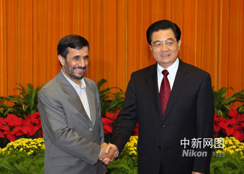 圖:胡錦濤會見伊朗總統(tǒng)內(nèi)賈德