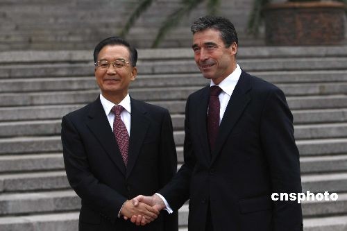10月22日,中國國務院總理溫家寶在北京人民大會堂東門外廣場舉行儀式,歡迎丹麥首相拉斯穆森。中新社發(fā) 盛佳鵬 攝