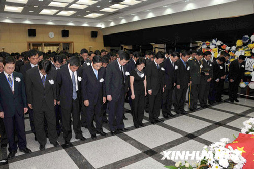 11月3日,中國駐蘇丹大使館舉行儀式,向日前在蘇丹被武裝分子綁架后遇害的5名同胞告別。中國駐蘇丹大使館工作人員、中國政府處理在蘇丹被綁架中國工人善后事宜工作組成員、中國石油天然氣集團公司負責人和在蘇丹中資機構(gòu)代表等200多人出席了儀式。中國石油天然氣集團公司9名員工2008年10月18日在蘇丹西南部一施工現(xiàn)場遭武裝分子綁架,其中5人遇害,另4人獲救。 新華社記者邵杰攝