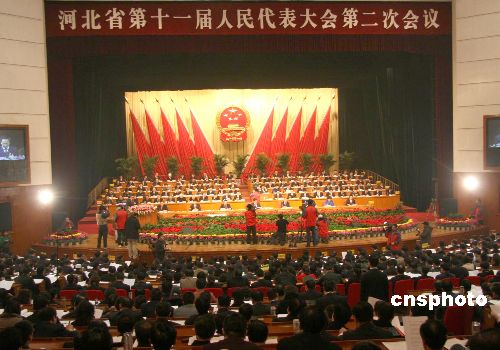 河北省第十一屆人民代表大會第二次會議1月8日在石家莊開幕,七百余名人大代表齊聚河北會堂,聽取和審議省政府工作報告。報告中提出該省今年經(jīng)濟(jì)增長9%的目標(biāo)。中新社發(fā) 田張夢 攝