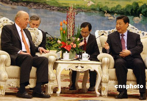 1月8日下午,中國國家副主席習(xí)近平在北京人民大會(huì)堂會(huì)見前來參加慶祝中美建交30周年活動(dòng)的美國副國務(wù)卿內(nèi)格羅蓬特一行。中新社發(fā) 任晨鳴 攝