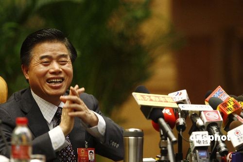 3月6日,出席十一屆全國(guó)人大二次會(huì)議的、廣東省省長(zhǎng)黃華華在北京舉行記者招待會(huì),接受中外記者的集體采訪。中新社發(fā) 盛佳鵬 攝