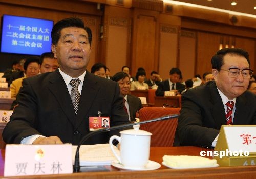 3月9日上午,十一屆全國(guó)人大二次會(huì)議在北京人民大會(huì)堂舉行第二次主席團(tuán)會(huì)議,主席團(tuán)成員賈慶林、李長(zhǎng)春出席。中新社發(fā) 任晨鳴 攝