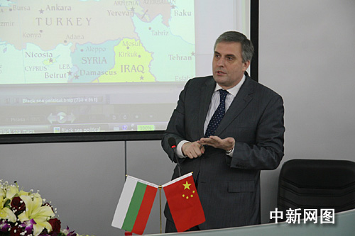 卡爾芬還為師大學(xué)子帶來題為《黑海區(qū)域的地位以及保加利亞對(duì)該地區(qū)穩(wěn)定與發(fā)展的貢獻(xiàn)》的精彩演講。華師 攝