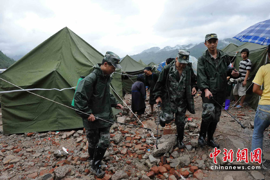 貴州關(guān)嶺滑坡 救援部隊(duì)為受災(zāi)群眾搭建帳篷