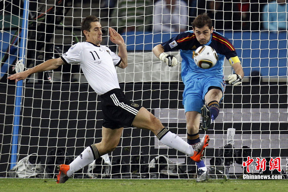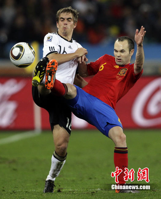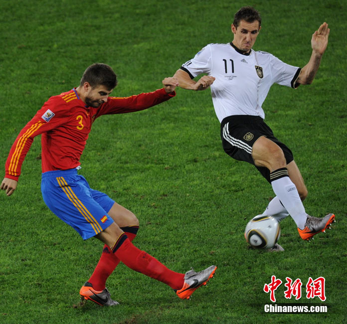 北京時(shí)間7月8日凌晨2:30,南非世界杯第二場(chǎng)半決賽在德班球場(chǎng)拉開戰(zhàn)幕,由德國(guó)隊(duì)迎戰(zhàn)西班牙。憑借普約爾在第73分鐘的頭球破門,西班牙隊(duì)1-0力克德國(guó),與荷蘭隊(duì)會(huì)師決賽。