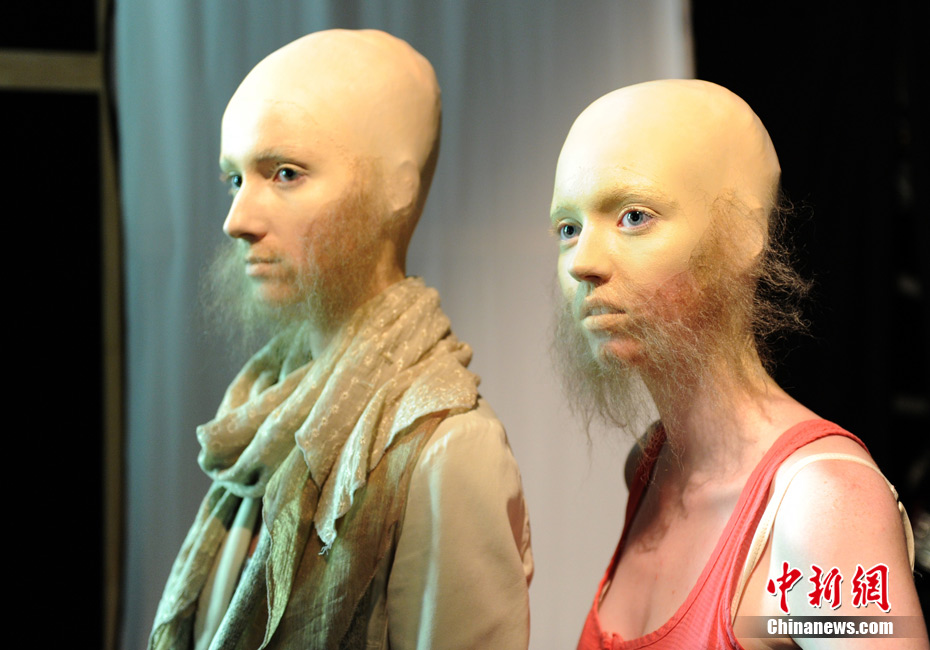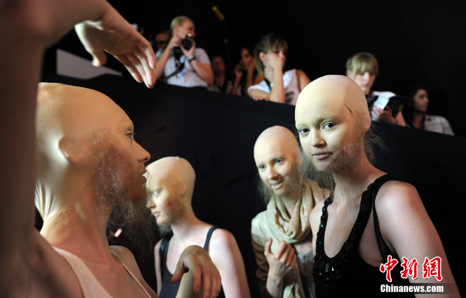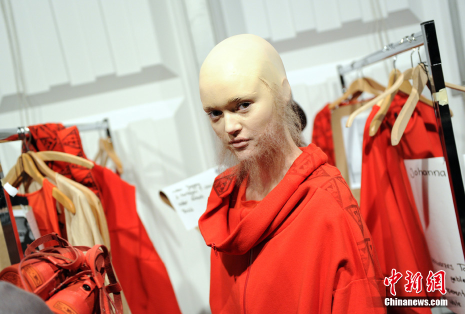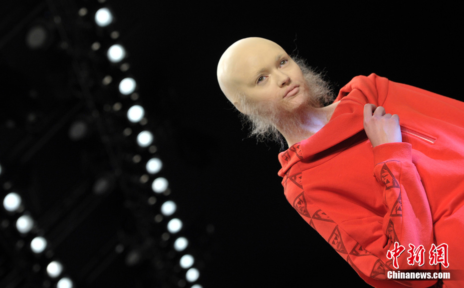 時(shí)尚可以美到讓人窒息,也可以雷人到讓人無語……柏林時(shí)裝周上,設(shè)計(jì)師Patrick Mohr引入了新的審美觀,美麗的女模特們一律是光頭和張飛一般的胡須造型,非常之震撼!