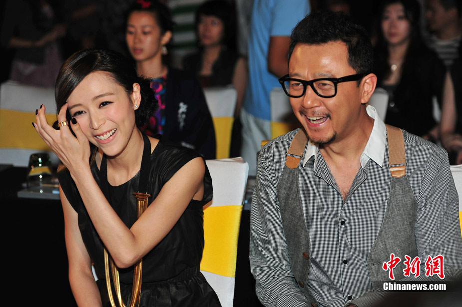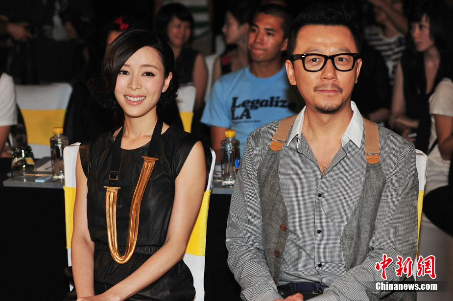 7月22日,國內首部“一站式情感體驗愛情片”《萬有引力》在北京召開關機發(fā)布會。主演張靜初、郭濤、戴立忍、文章、白百合等到場。當郭濤被記者問到張靜初是否是自己喜歡的類型時,郭濤坦言,“張靜初是自己的夢中情人”。而文章,白百何則“不巧”撞衫,身著幾乎一樣的黑白格子襯衫出席,這對中戲老同學在現(xiàn)場“打情罵俏”大搶風頭。 中新社記者 李學仕 攝