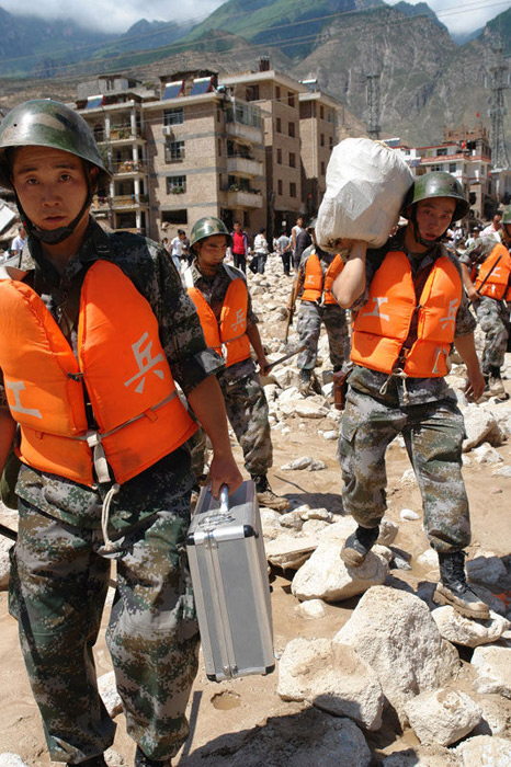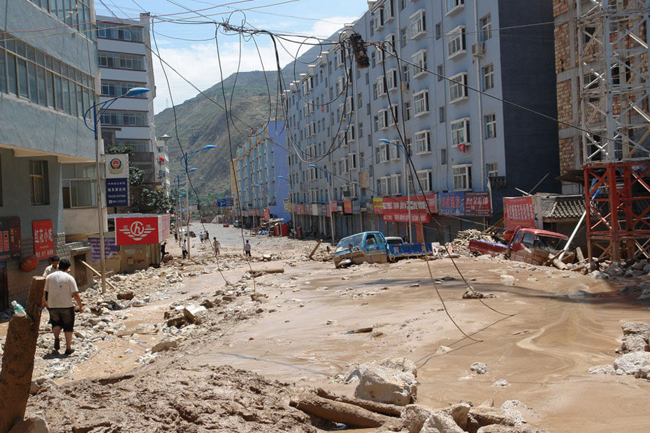 8月7日22時許,甘南藏族自治州舟曲縣突降強降雨,縣城北面的羅家峪、三眼峪泥石流下泄,由北向南沖向縣城,造成沿河房屋被沖毀,泥石流阻斷白龍江、形成堰塞湖。截至當日16時統(tǒng)計,泥石流災(zāi)害已造成127人死亡,76人受傷,近2000人失蹤,緊急轉(zhuǎn)移安置4.5萬人,倒塌房屋120余戶300余間。圖片來源 新華網(wǎng)