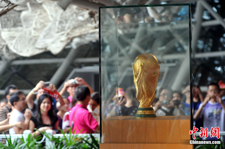8月30日晨,“大力神杯”空降上海世博園西班牙館。當天正值上海世博會西班牙國家館日!按罅ι癖弊鞫虝和A,展出一天后,將隨即運回西班牙國內(nèi)巡回展出。中新社記者 蔣雪林 攝