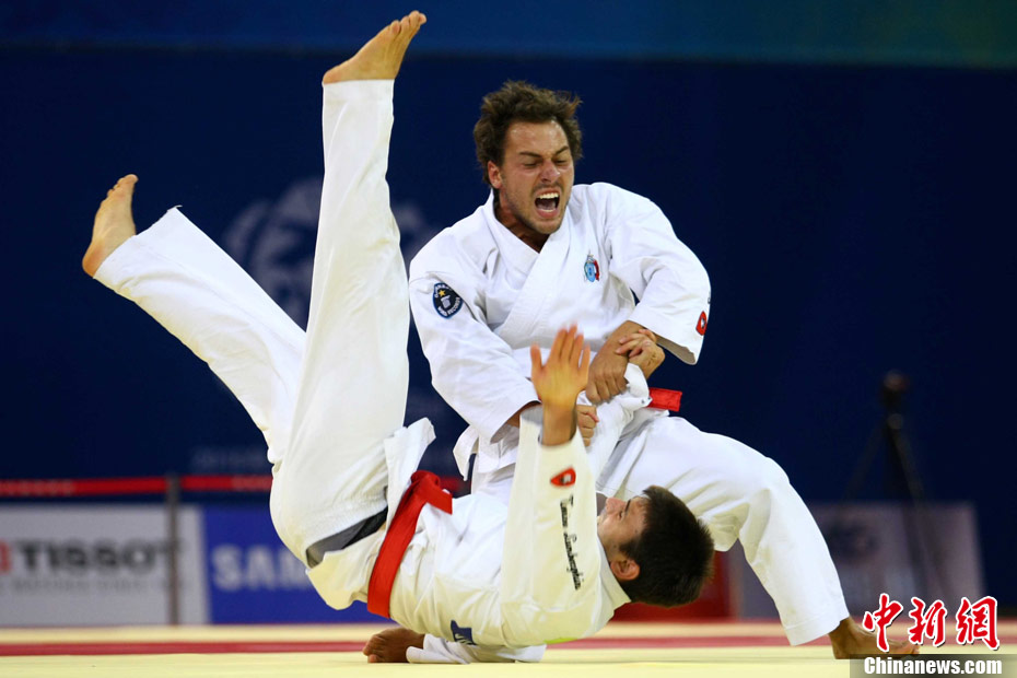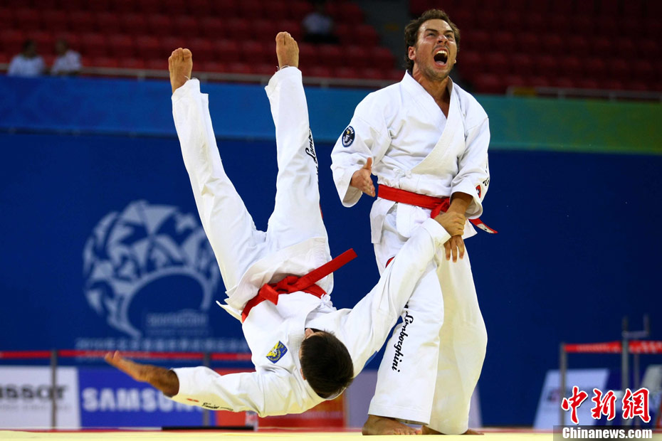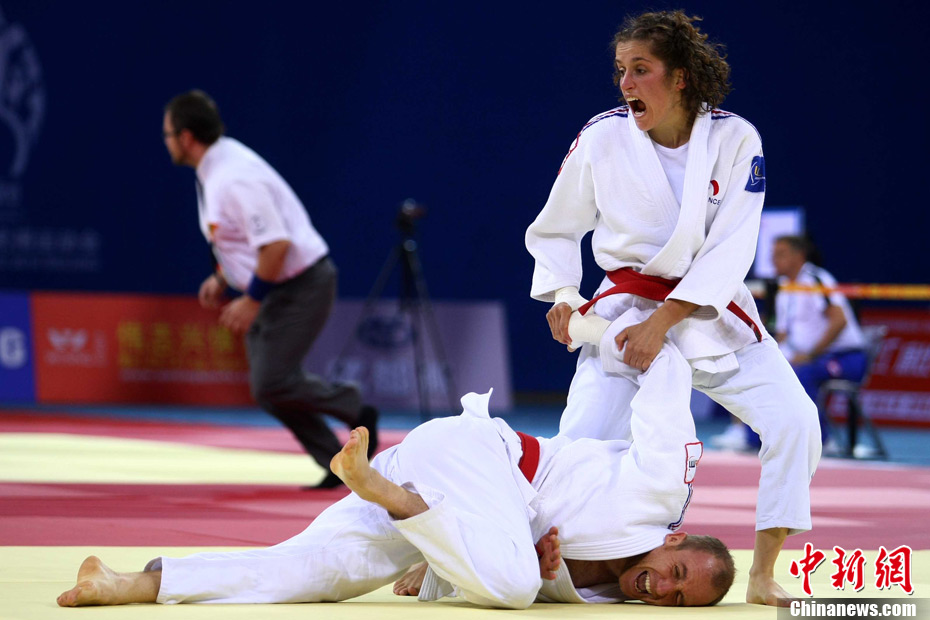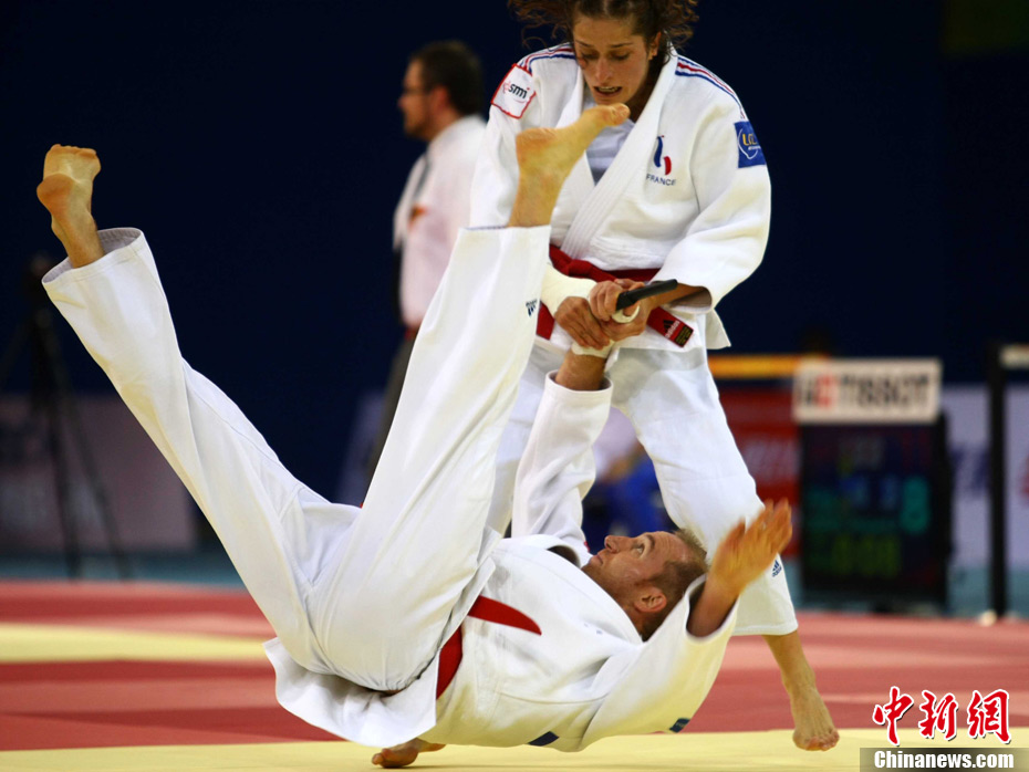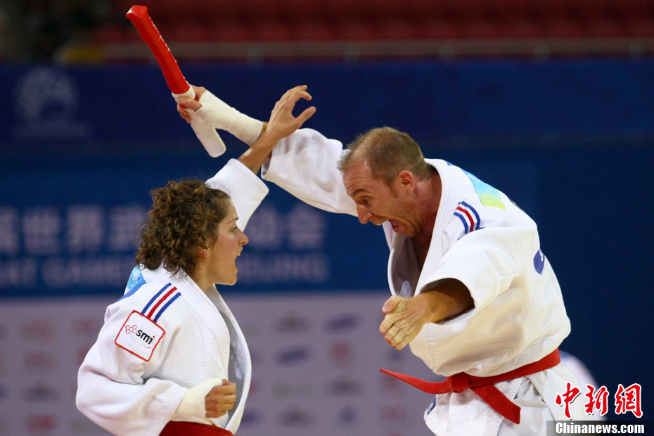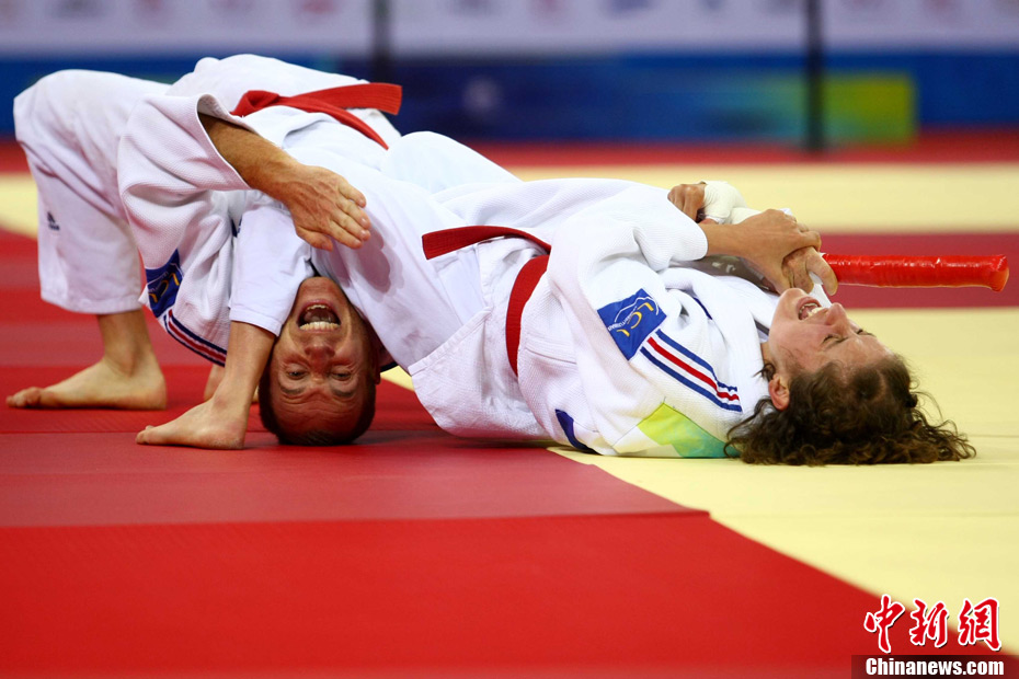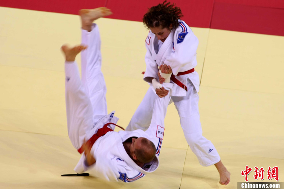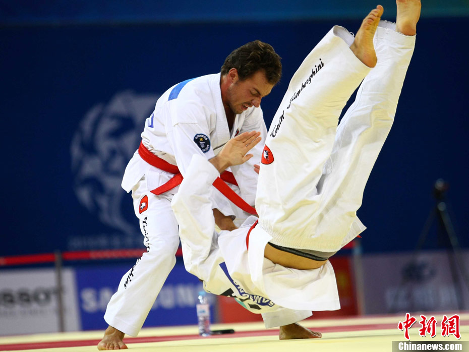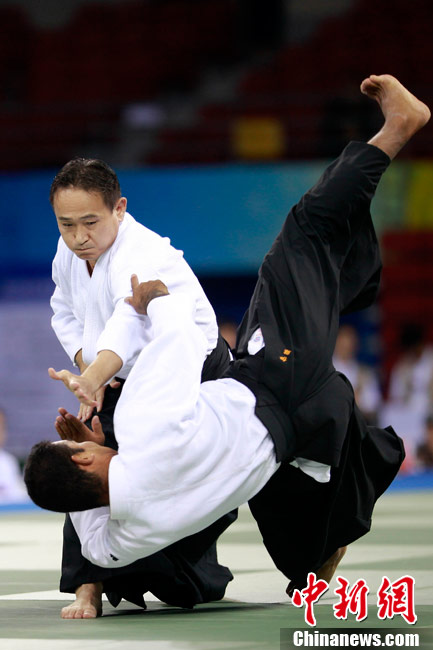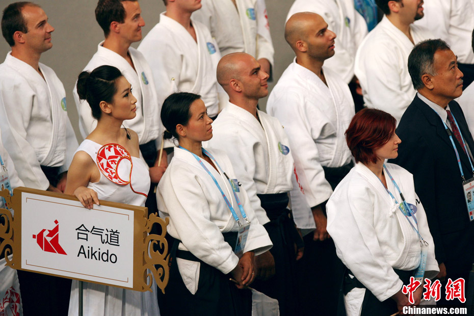 8月30日,男女選手在北京武搏會合氣道比賽上演了“異性對決”。合氣道是一種根源于日本大東流合氣柔術(shù)的近代武術(shù),合氣道不注重比賽的勝負,沒有跟別人較量的思想,而是跟他人一起鍛煉和修養(yǎng)自己,因此才會有鮮見的異性同場對決的場面出現(xiàn)。本次武搏會,合氣道將作為表演項目,無特別的規(guī)則,因此不能夠嚴格地定義勝利者或者失敗者。國際合氣道聯(lián)合會將組織高段教官來評判各項表演,表演賽分為基本技巧、高級技巧和復(fù)合技巧等三個單元。 中新社發(fā) 蘇丹 攝