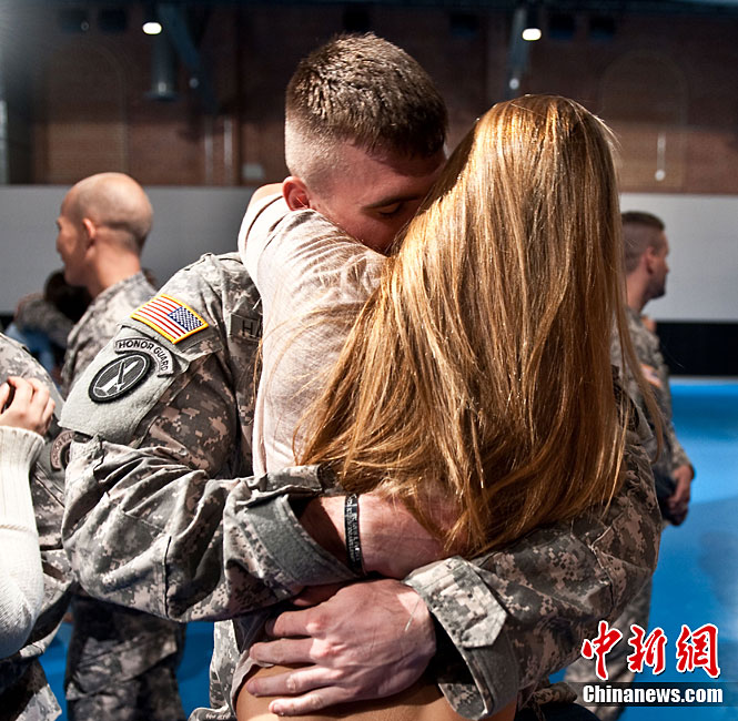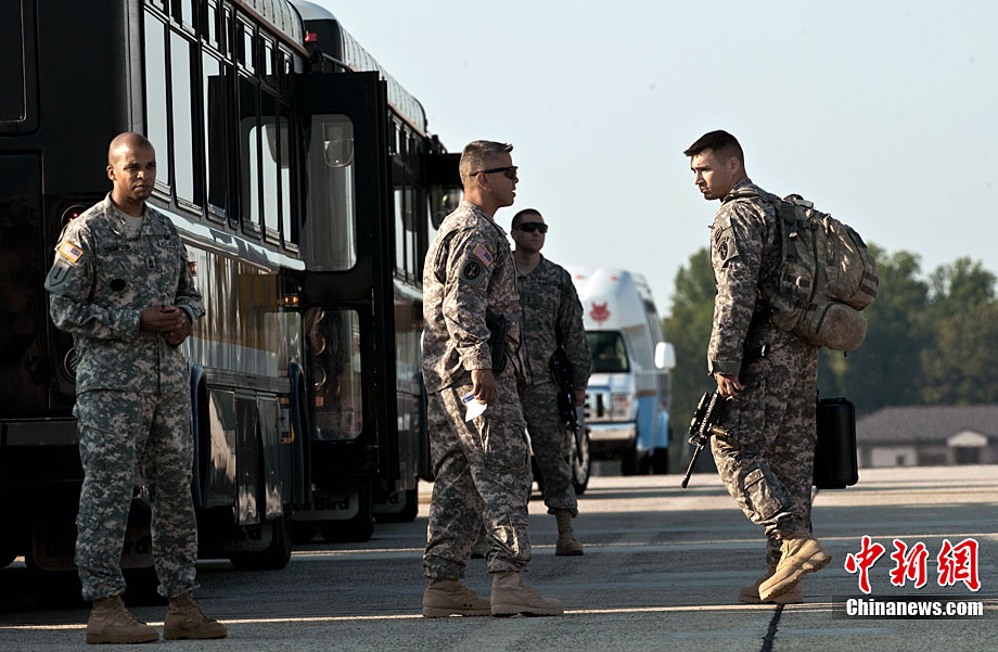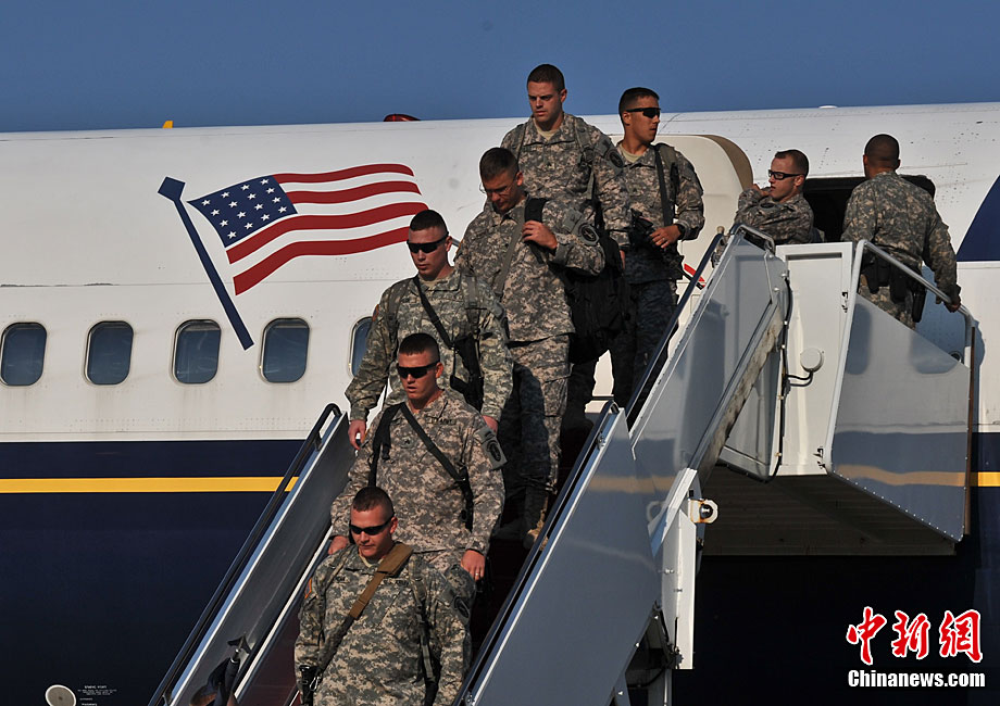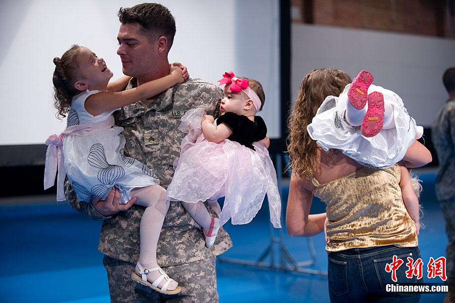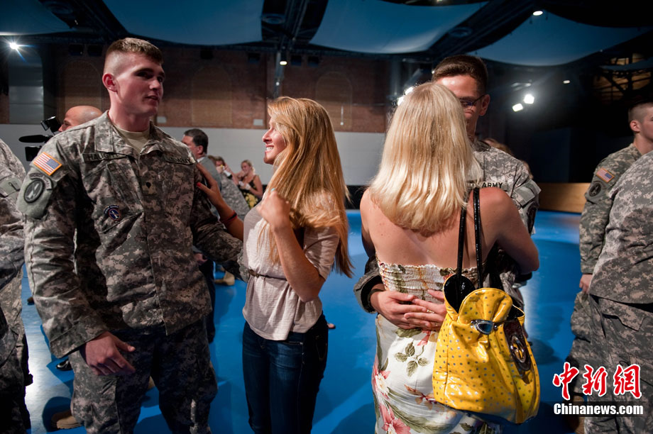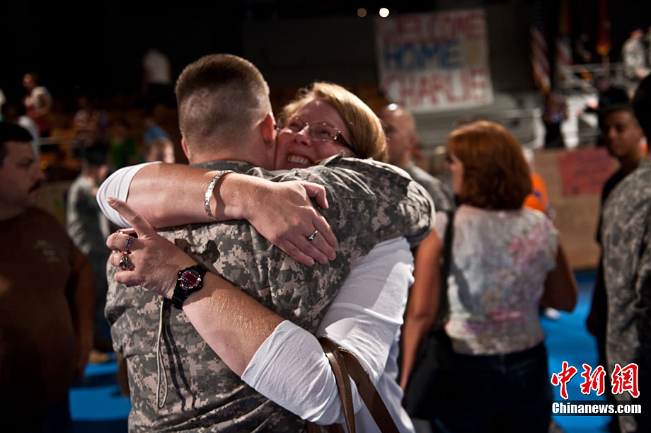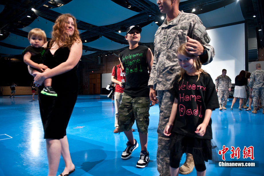 當?shù)貢r間8月28日,部分駐伊美軍戰(zhàn)斗部隊士兵抵達美國首都華盛頓附近的安德魯斯空軍基地,并與親屬團聚。