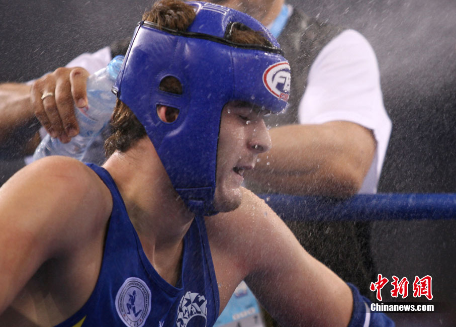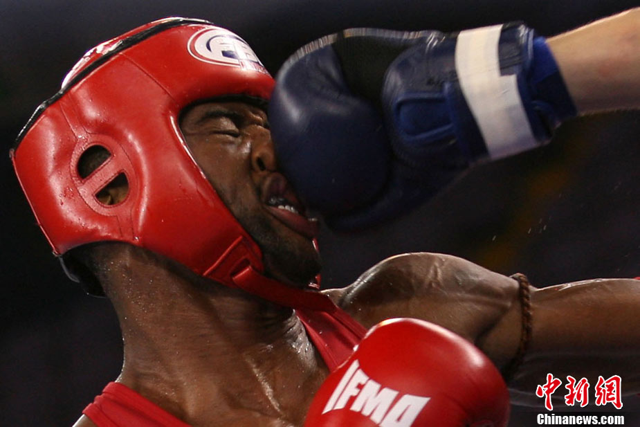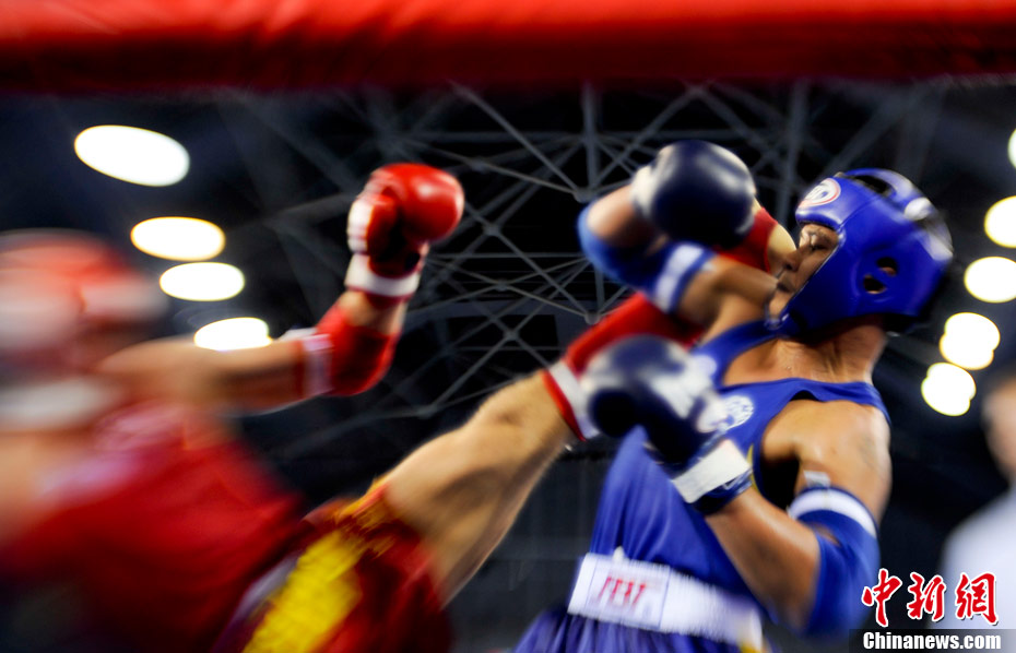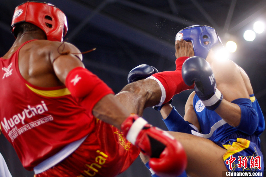 8月31日,2010年北京首屆世界武搏運動會泰拳比賽在北京奧體中心體育館進行了11個級別半決賽的較量,包括8個級別的男子半決賽和3個級別的女子半決賽。 中新社發(fā) 盛佳鵬 攝